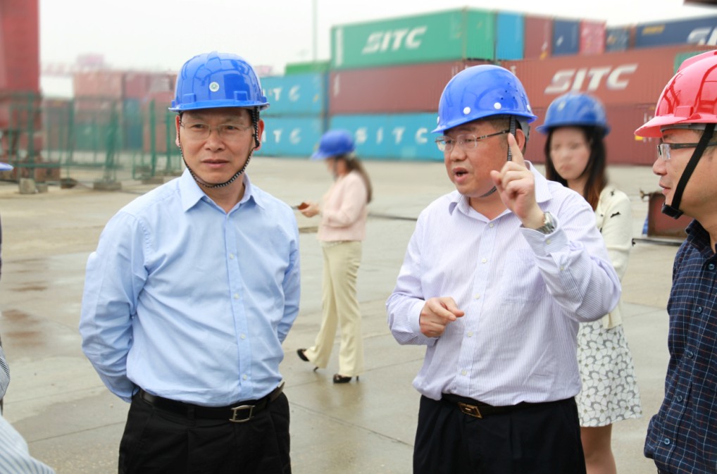 袁建堯詳細(xì)詢問了碼頭建設(shè)、貨源、業(yè)務(wù)和吞吐量等情況,新港公司董事長唐忠良向袁建堯一行介紹了長沙新港一、二期碼頭業(yè)務(wù)、運營,及三期工程建設(shè)進(jìn)展等情況。同時提出兩點請求:1、請求協(xié)調(diào)部、省交通運輸廳三期工程補助資金盡快到位,以保證三期工程建設(shè)的順利進(jìn)行;2、請求協(xié)調(diào)解決南門港至湘陰大橋段的航道疏浚問題,以確?菟谙娼降赖娜暢通。長沙市地方海事局胡曉東向領(lǐng)導(dǎo)介紹,霞凝港是二類水運口岸,海關(guān)直接在此監(jiān)管,報關(guān),送檢,貨物經(jīng)過這一系列流程后,可裝箱直接發(fā)往上海港中轉(zhuǎn)至世界各地港口。袁建堯強調(diào)要加強安全生產(chǎn)、安全作業(yè),要特別注意安全。