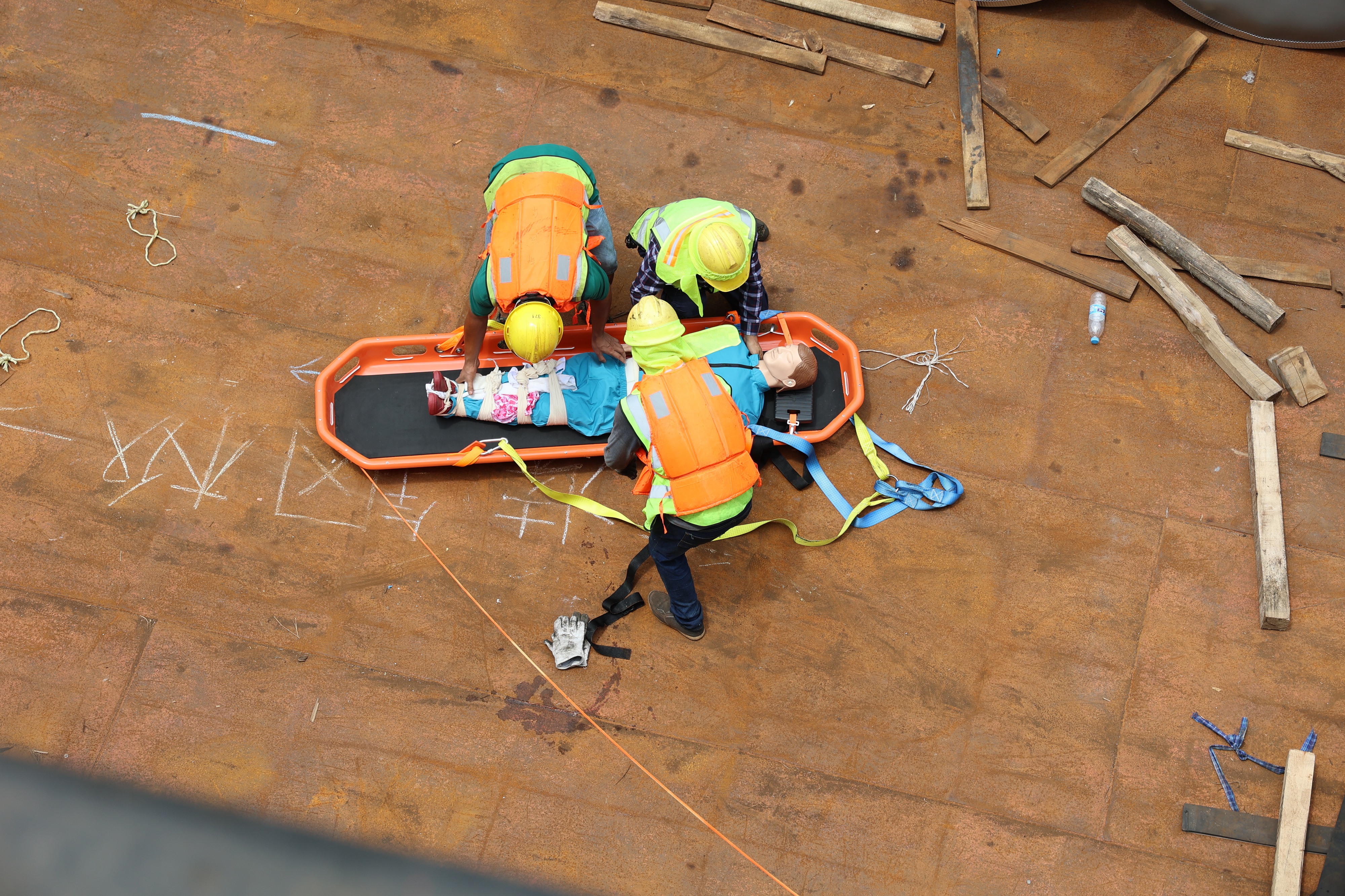 長(zhǎng)沙新港開展生產(chǎn)安全事故應(yīng)急救援演練 6月29日上午10時(shí),湖南長(zhǎng)沙新港有限責(zé)任公司在南片區(qū)碼頭開展了生產(chǎn)安全事故應(yīng)急救援演練,模擬冷軋卷鋼在下河作業(yè)過程中發(fā)生吊帶斷裂,造成人員受傷和貨物受損的安全事故。公司黨委副書記、總經(jīng)理辛華任演練總指揮,副總經(jīng)理張韜任演練副總指揮,副總經(jīng)理周明德任演練現(xiàn)場(chǎng)總指揮,同時(shí)參演的還有各部室負(fù)責(zé)人、各應(yīng)急救援小組成員、生產(chǎn)作業(yè)班組,并邀請(qǐng)了藍(lán)天救援隊(duì)的專業(yè)老師進(jìn)行心肺復(fù)蘇、骨折包扎、傷員搬運(yùn)等現(xiàn)場(chǎng)教學(xué)。整個(gè)演練過程按應(yīng)急救援預(yù)案展開,應(yīng)急處置組、現(xiàn)場(chǎng)警戒組、設(shè)備保障組、醫(yī)療善后組、信息后勤組5個(gè)救援小組分工明確,妥善應(yīng)對(duì),圓滿地完成了此次演練。演練結(jié)束后,公司領(lǐng)導(dǎo)進(jìn)行了點(diǎn)評(píng),通過這次演練檢驗(yàn)了應(yīng)急響應(yīng)人員對(duì)應(yīng)急預(yù)案、執(zhí)行程序的了解程度和實(shí)際操作技能,明確了各自的崗位與職責(zé),提高了全員的安全意識(shí)。在實(shí)際工作中,大家要更重視生產(chǎn)一線的現(xiàn)場(chǎng)監(jiān)督、管控,注重生命安全,堅(jiān)持以人為本、生命至上的原則,確保安全生產(chǎn)。    (本文圖片為模擬現(xiàn)場(chǎng),為仿真人物道具) |