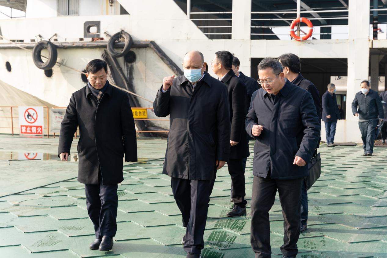 2月15日,副省長李建中調(diào)研湘江航道及港口建設(shè)發(fā)展情況,來到長沙港霞凝港區(qū)實地考察。長沙交通集團黨委書記、董事長李建國,黨委副書記、董事、總經(jīng)理劉俊武在長沙新港陪同考察。