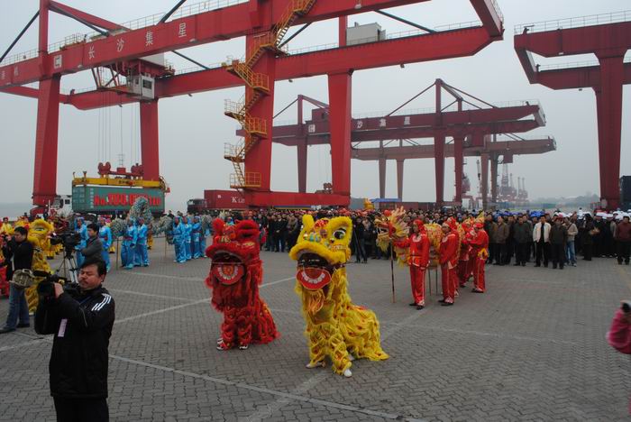 2009年12月28日上午,長沙霞凝新港彩旗飄舞,禮花怒綻。11時許,隨著第10萬個集裝箱順利起吊,長沙新港2009年集裝箱吞吐量歷史性地突破了10萬標(biāo)箱,創(chuàng)歷史最高紀(jì)錄。這也標(biāo)志著長沙港邁上國內(nèi)內(nèi)河支線港口領(lǐng)先地位。 “2004年共吞吐集裝箱5.61萬標(biāo)箱,到2008年完成9.41萬標(biāo)箱,2009年在沿海各港口吞吐量普遍下降的情況下,長沙新港仍逆勢增長,比2008年增加7000標(biāo)箱,一舉突破10萬標(biāo)箱。”湖南長沙新港有限責(zé)任公司董事長石道國對這些數(shù)據(jù)倒背如流。 今年以來,面對國際金融危機和湘江枯水的雙重影響,作為全國內(nèi)河28個主要港口之一的長沙新港堅持積極靈活的營銷策略,一方面大力發(fā)展內(nèi)貿(mào)業(yè)務(wù), 一方面走出去積極培養(yǎng)新市場。 目前,該港巳擁有7條國際集裝箱內(nèi)河支線運輸線,開辟了歐洲、澳洲、非洲、南美等數(shù)十條國際航線,每周有進出口國際集裝箱航班40多個,貨物通過湘江入長江經(jīng)上海港中轉(zhuǎn)運往世界各地,形成了通江達海物流全球的水路網(wǎng)絡(luò)體系。 |