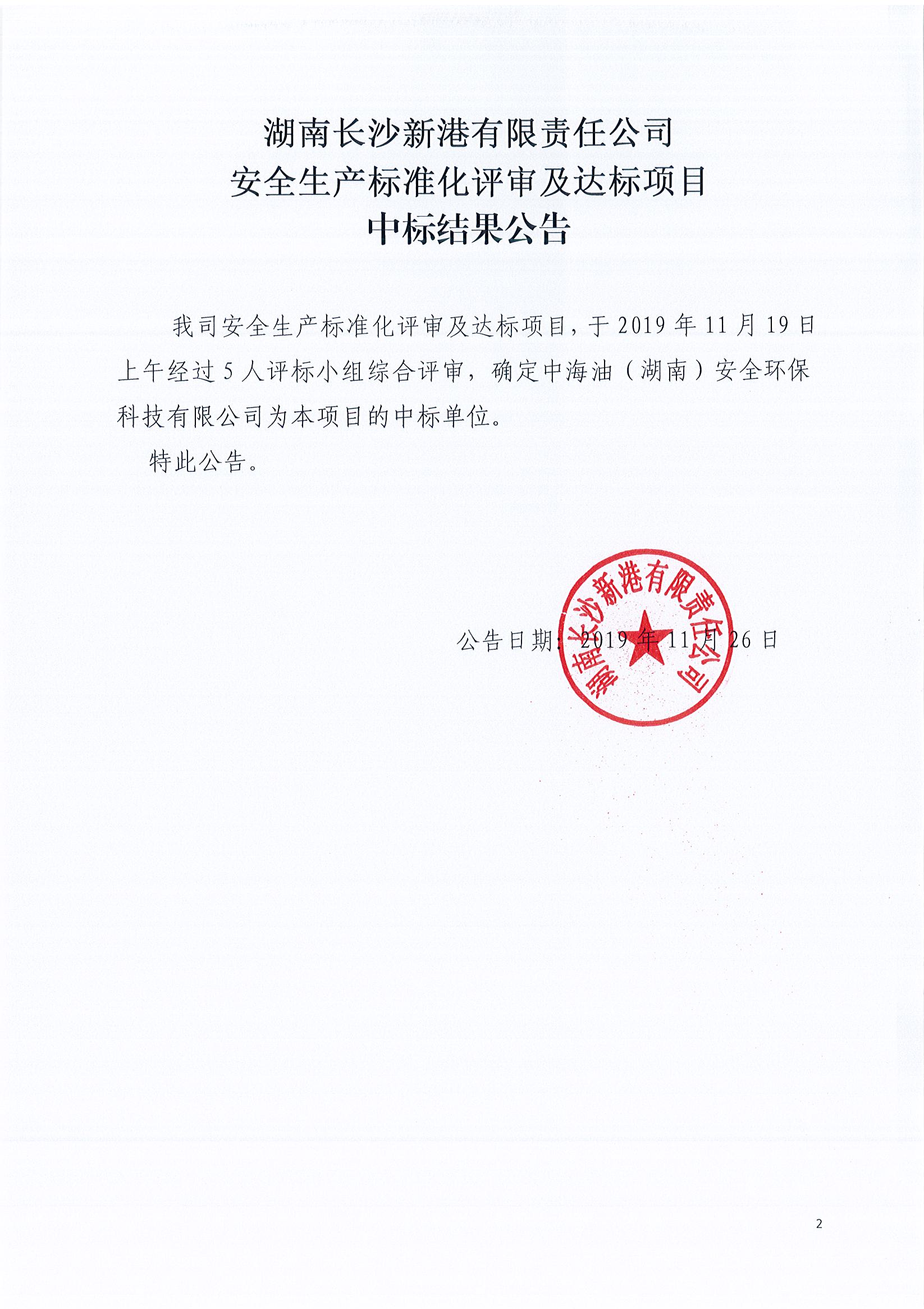 安全生產(chǎn)標(biāo)準(zhǔn)化評審及達(dá)標(biāo)項(xiàng)目中標(biāo)結(jié)果公告