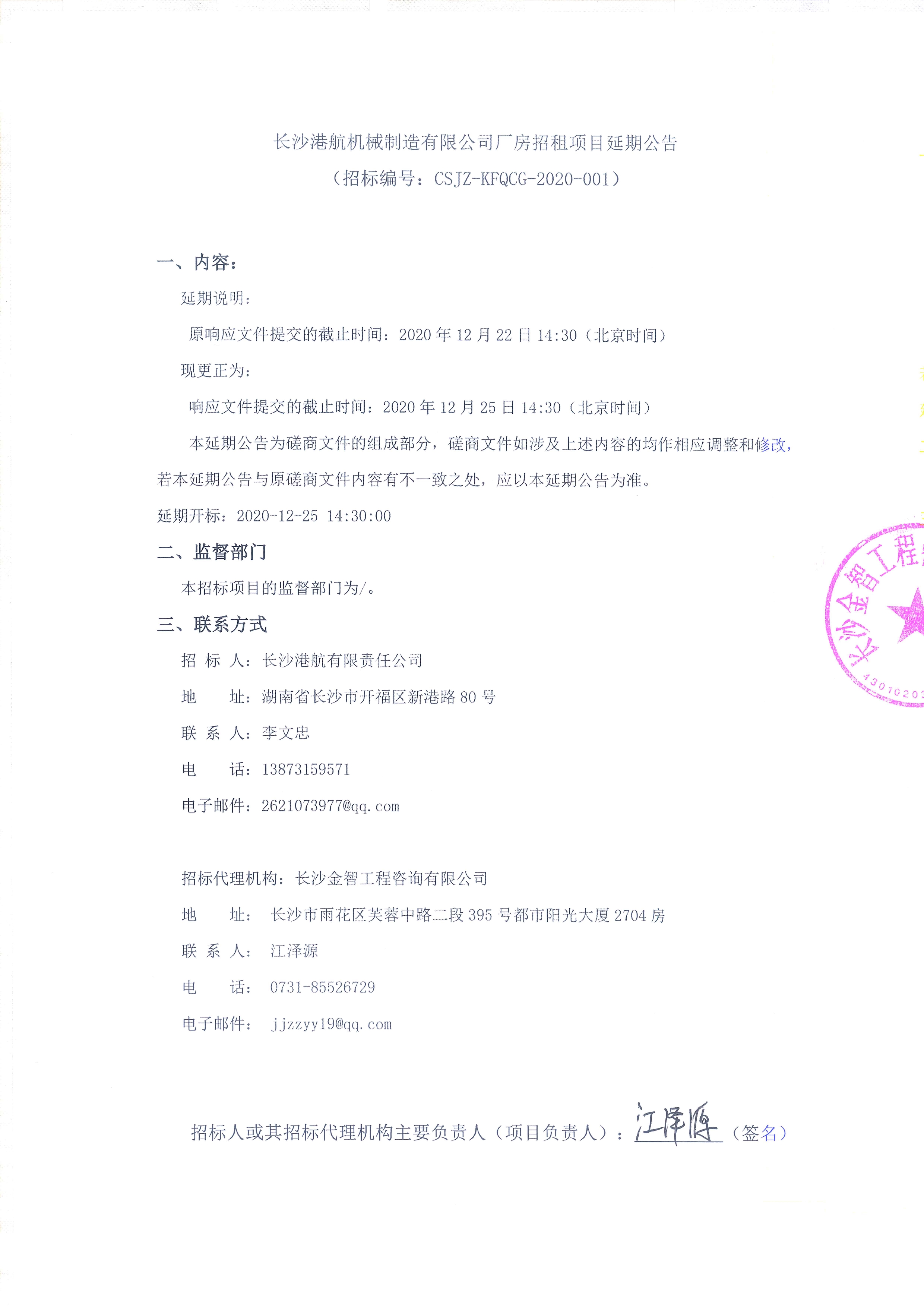 長(zhǎng)沙港航機(jī)械制造有限公司廠房招租項(xiàng)目延期公告