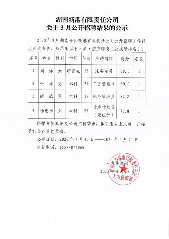 關(guān)于3月公開(kāi)招聘結(jié)果的公示