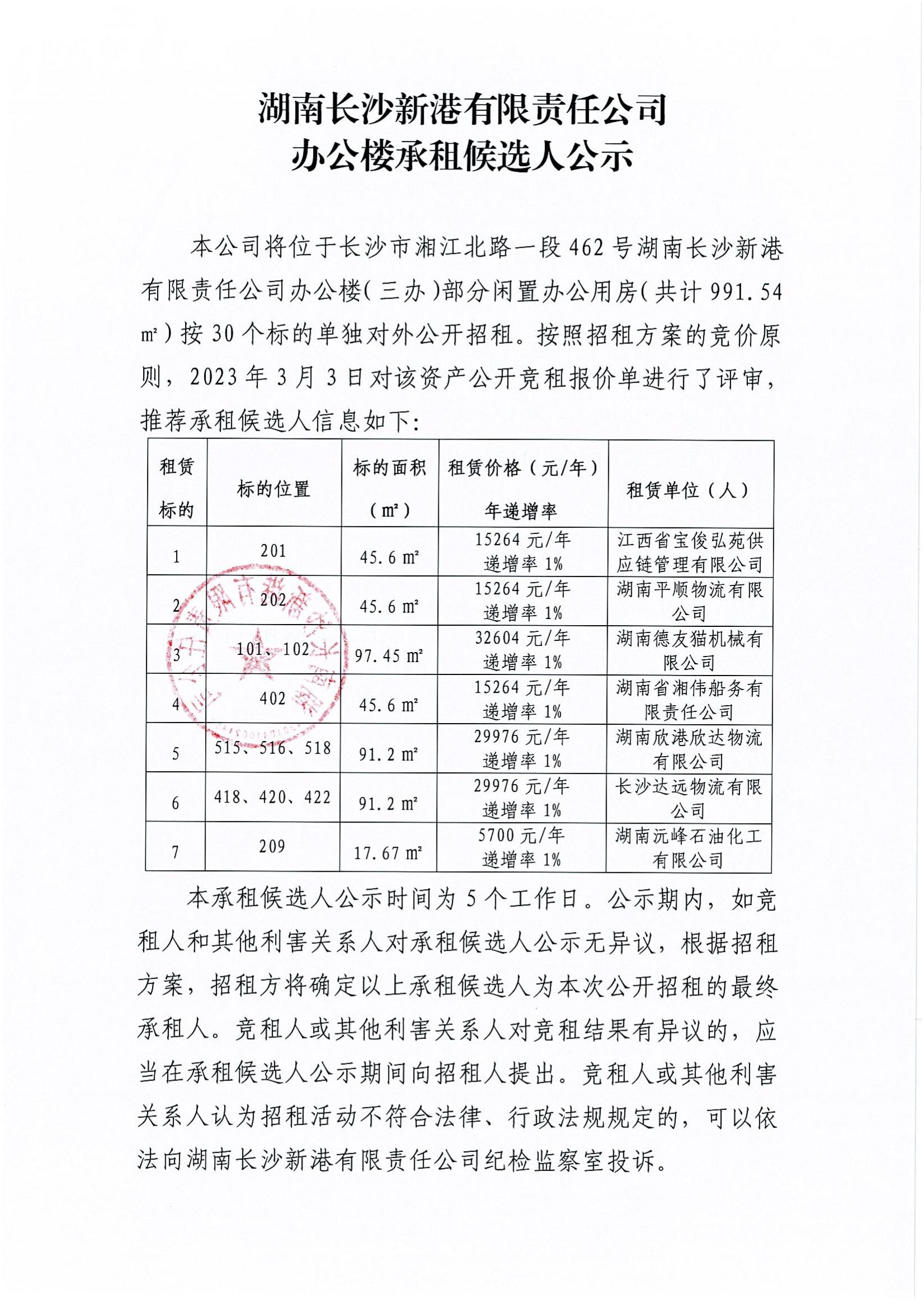 辦公樓承租候選人公示