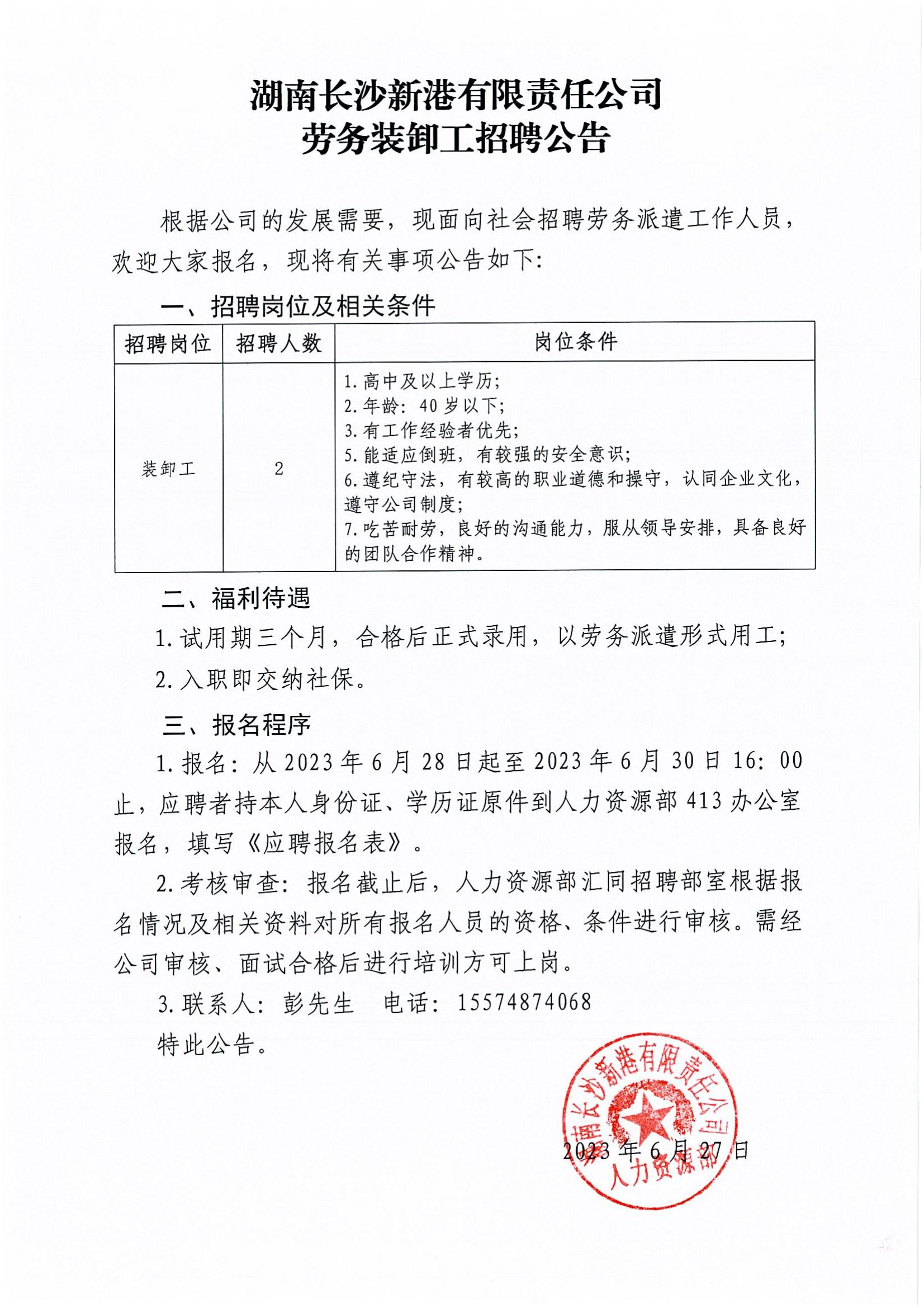 新港公司招聘公告
