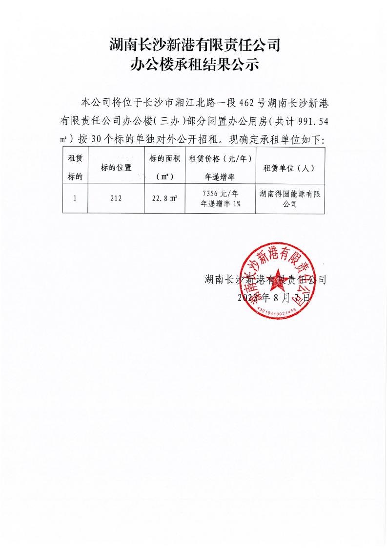 湖南長沙新港有限責(zé)任公司辦公樓承租結(jié)果公示